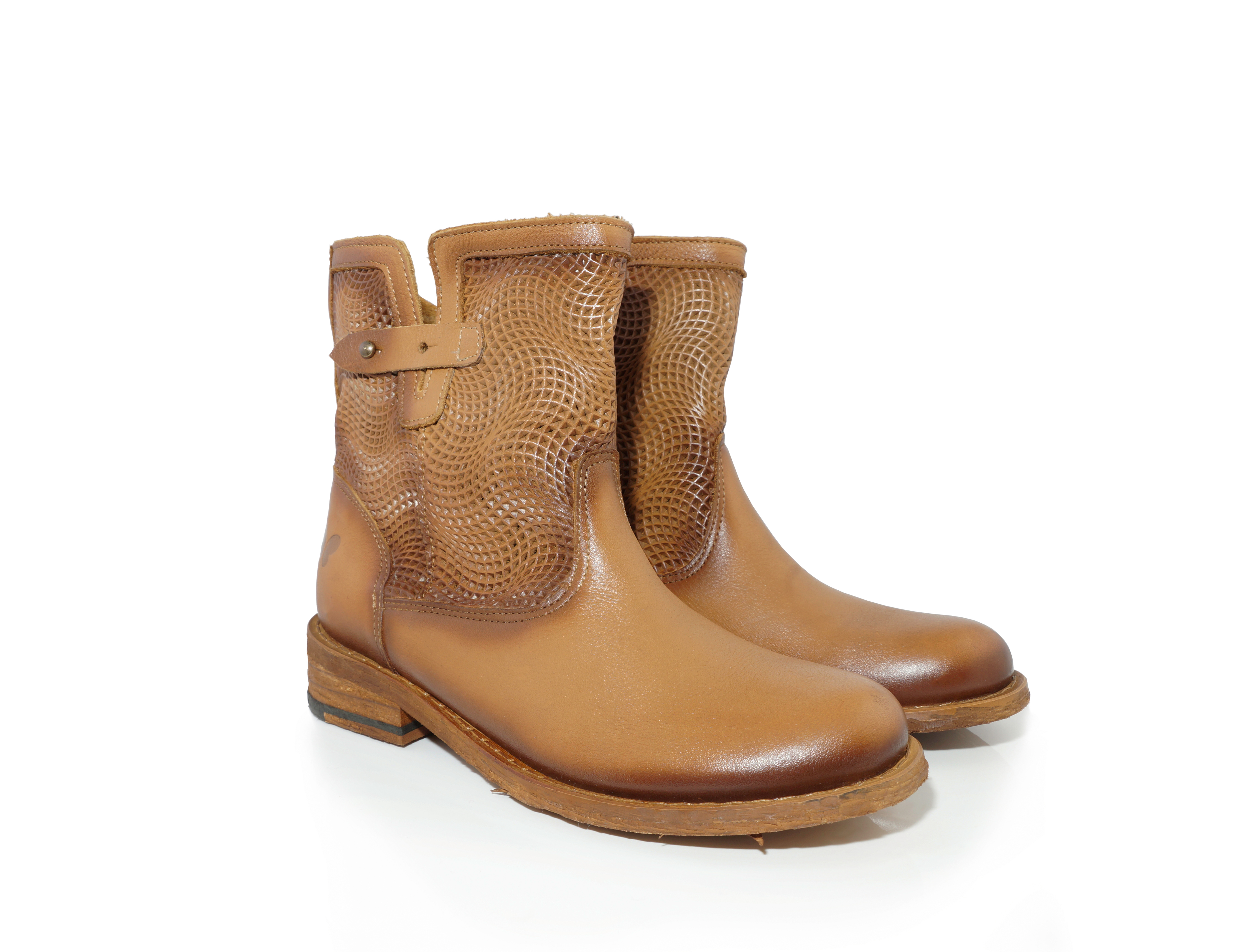 Botins em pele com efeito Treccia e sem forro no cano e sola em Thunit.