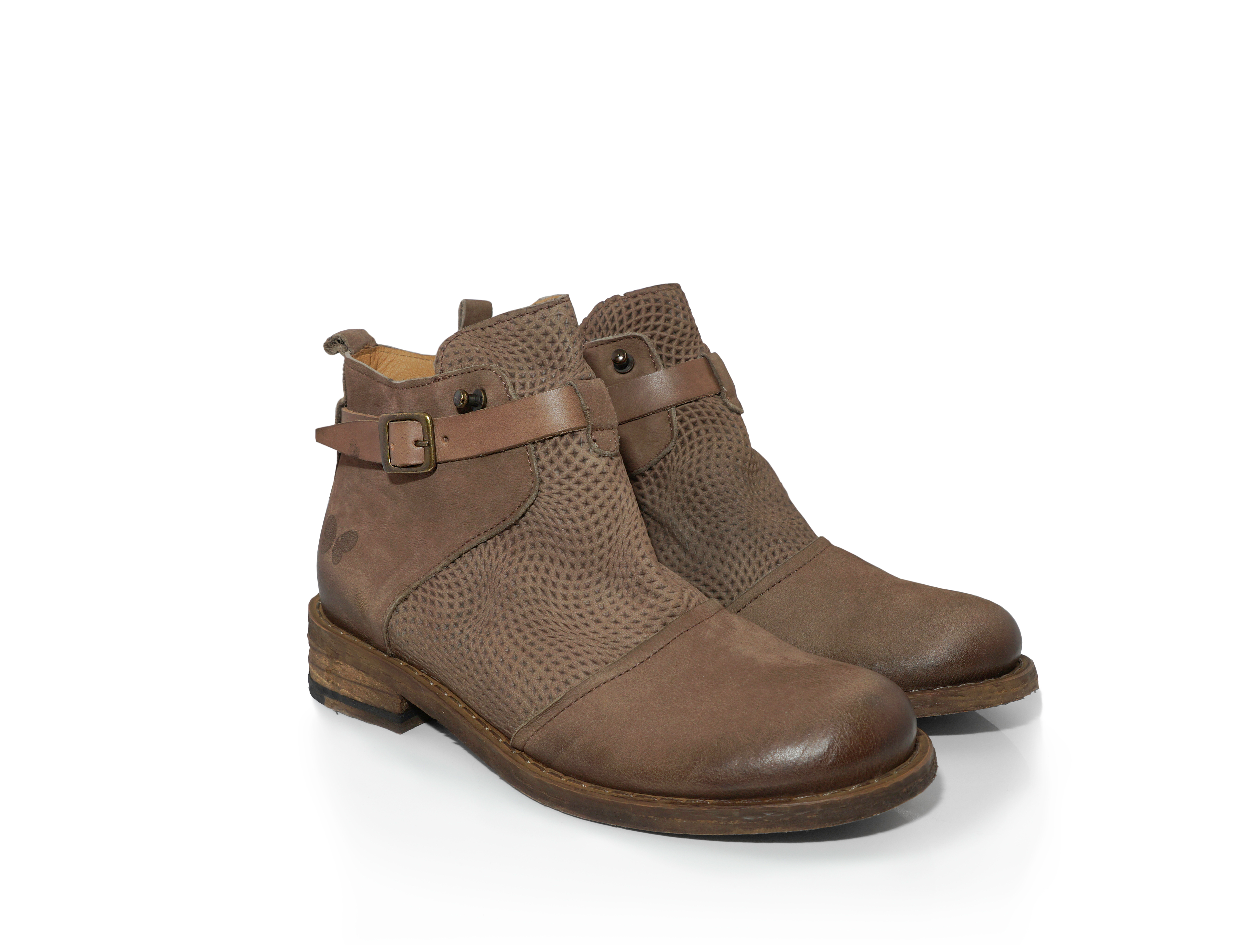 Botins em pele com microperfuração no cano, forros em pele, fecho interior e sola em Thunit.